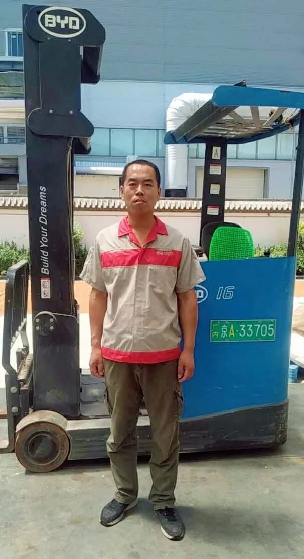 張明的性格里透露著湖南人的直爽、熱情,總能給人留下深刻的印象。2014年,他開始在比亞迪叉車工作,現在主要負責湖北等地。他之所以選擇做售后服務這個崗位,主要是因為自己喜歡。